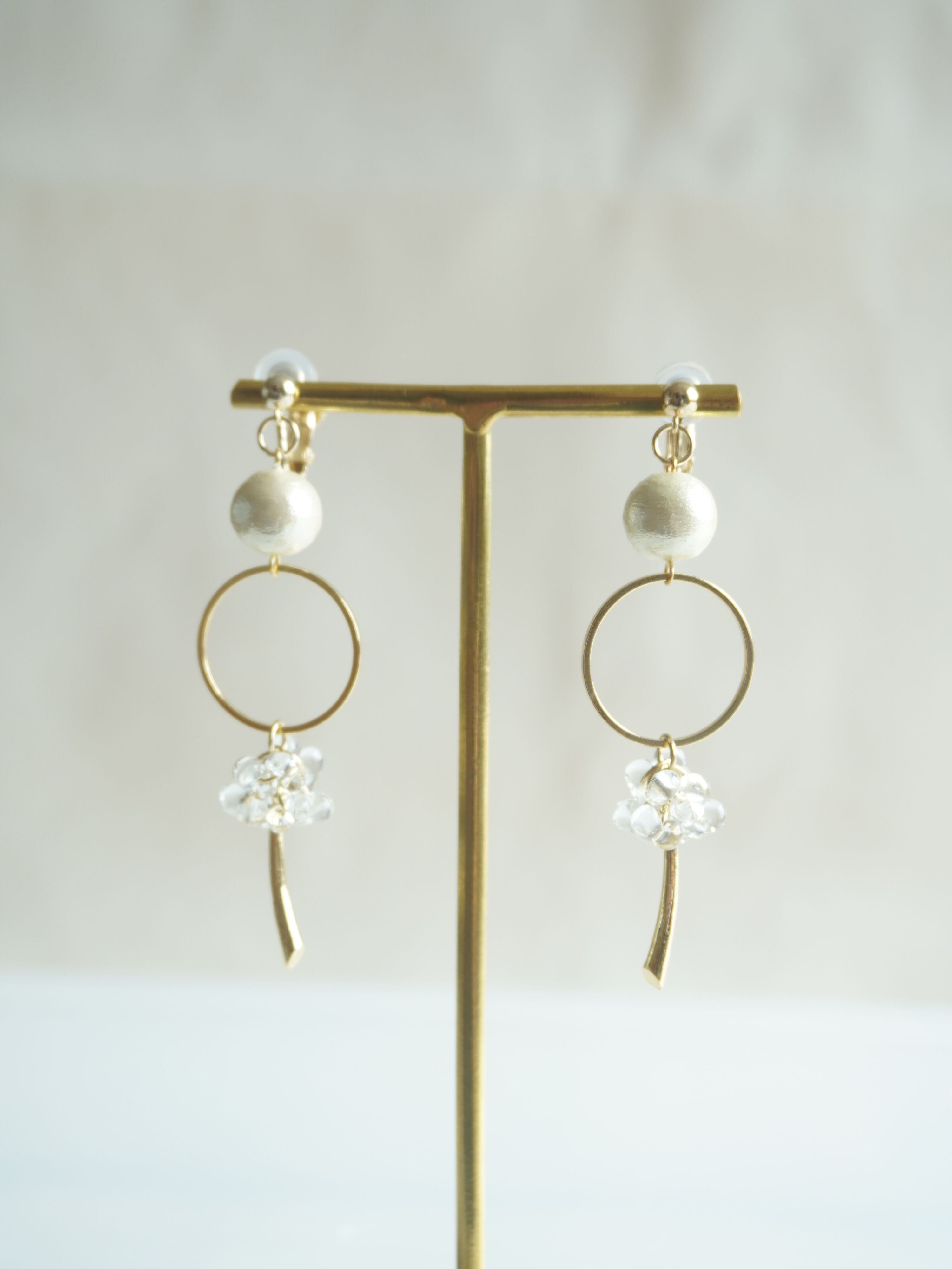 《クリアビーズ×ゴールドパーツ ピアス》