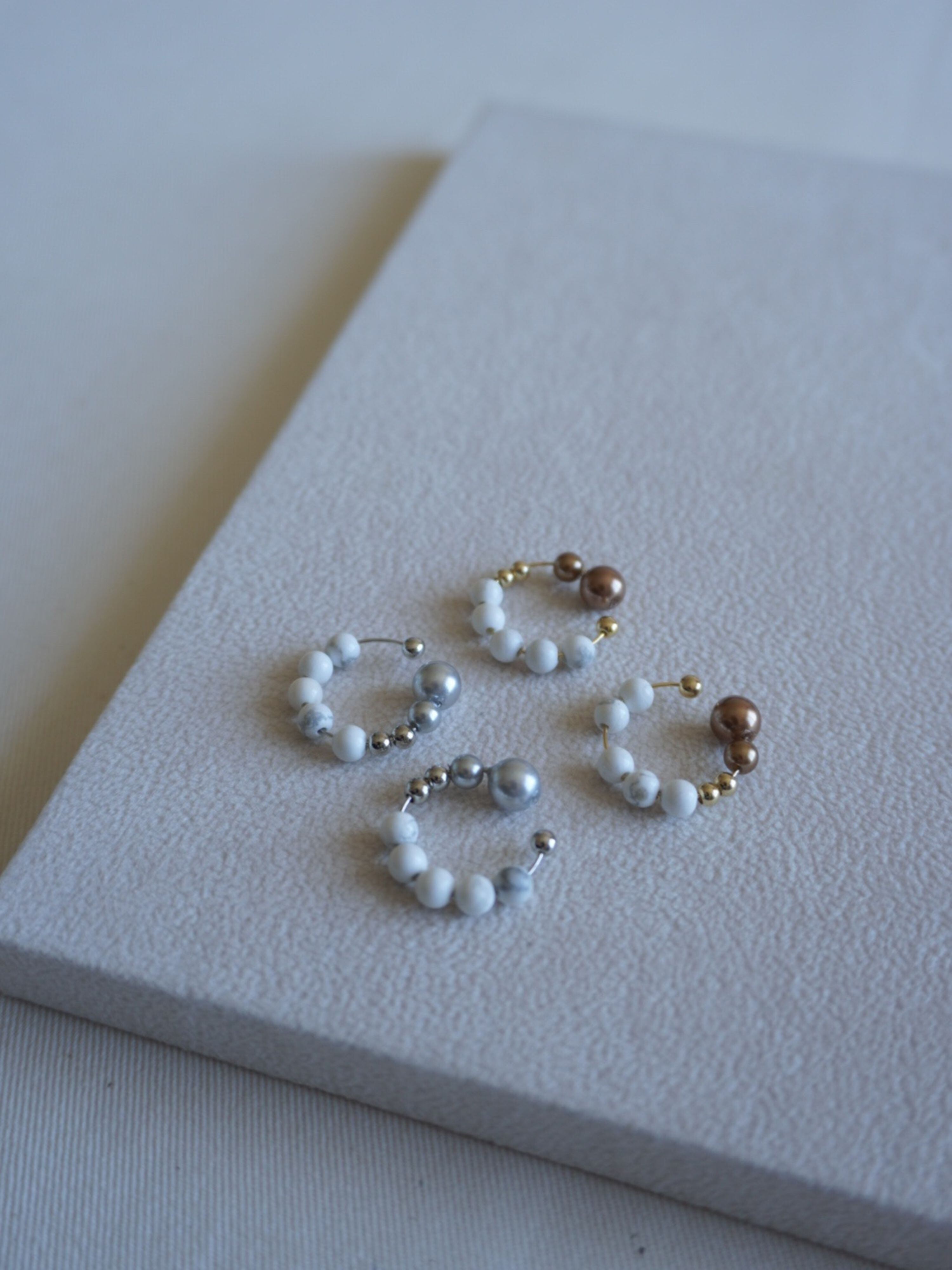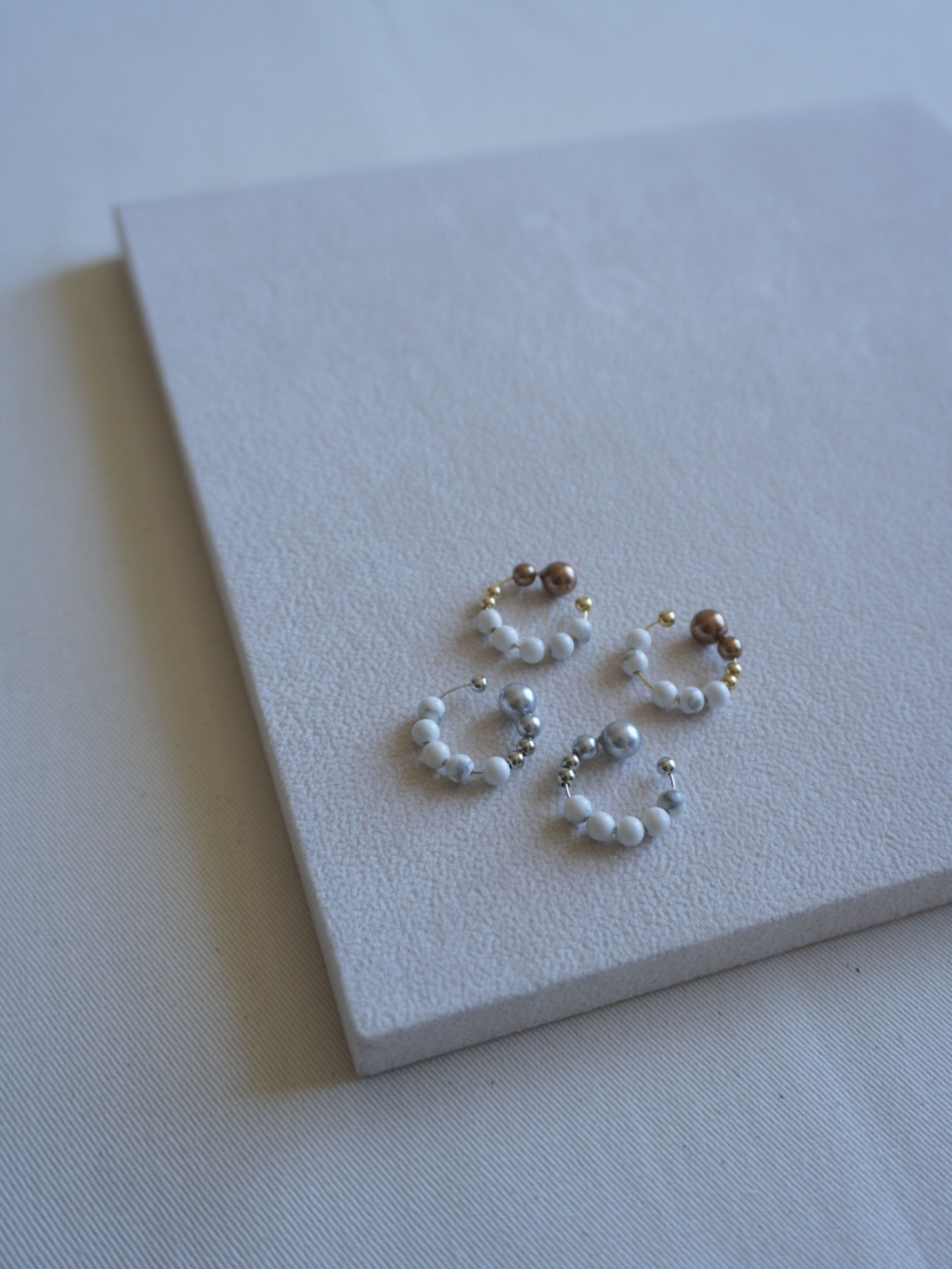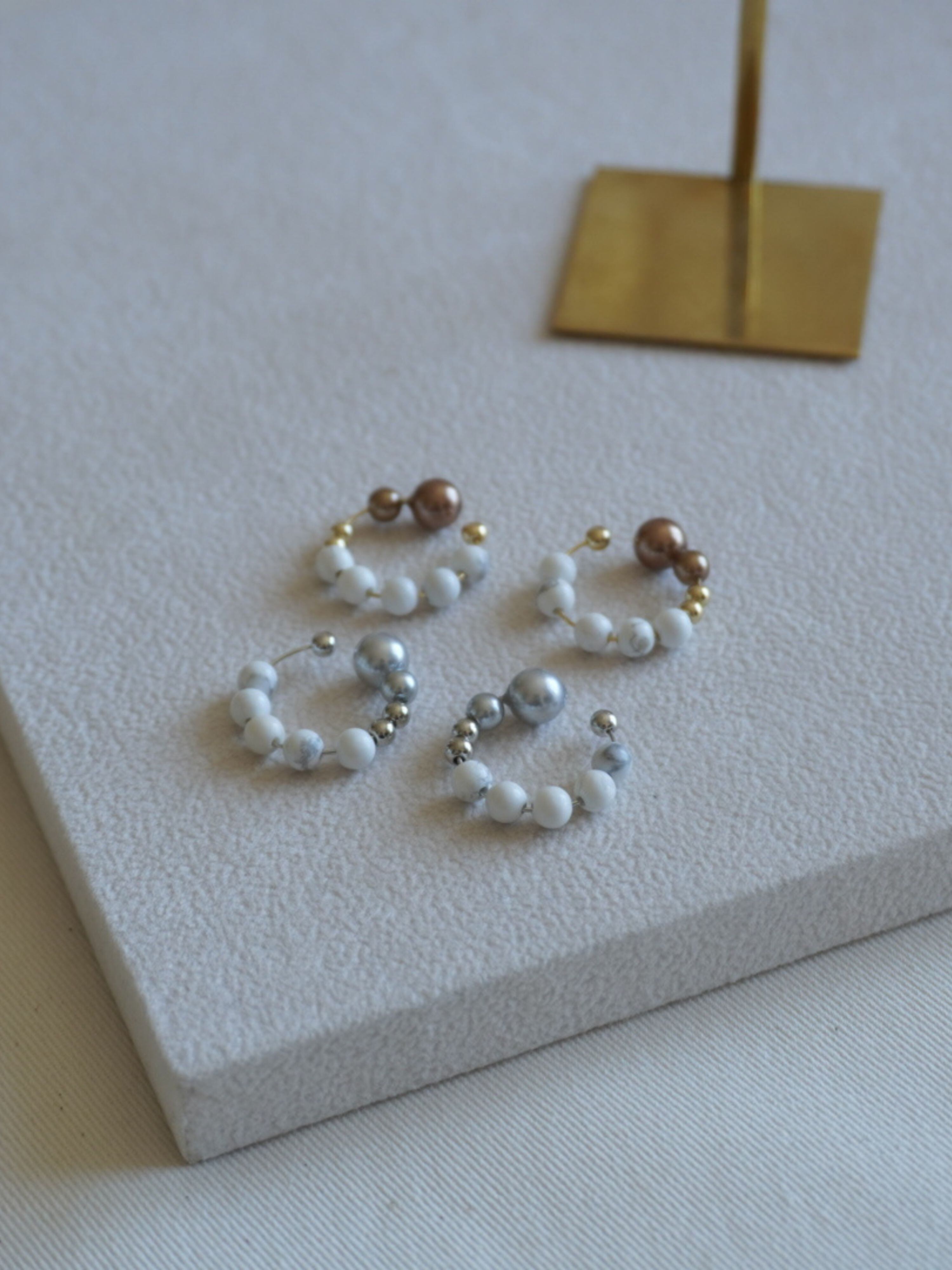 天然石ハウライトを主役に、素材の質感にこだわって仕上げたイヤーカフ。