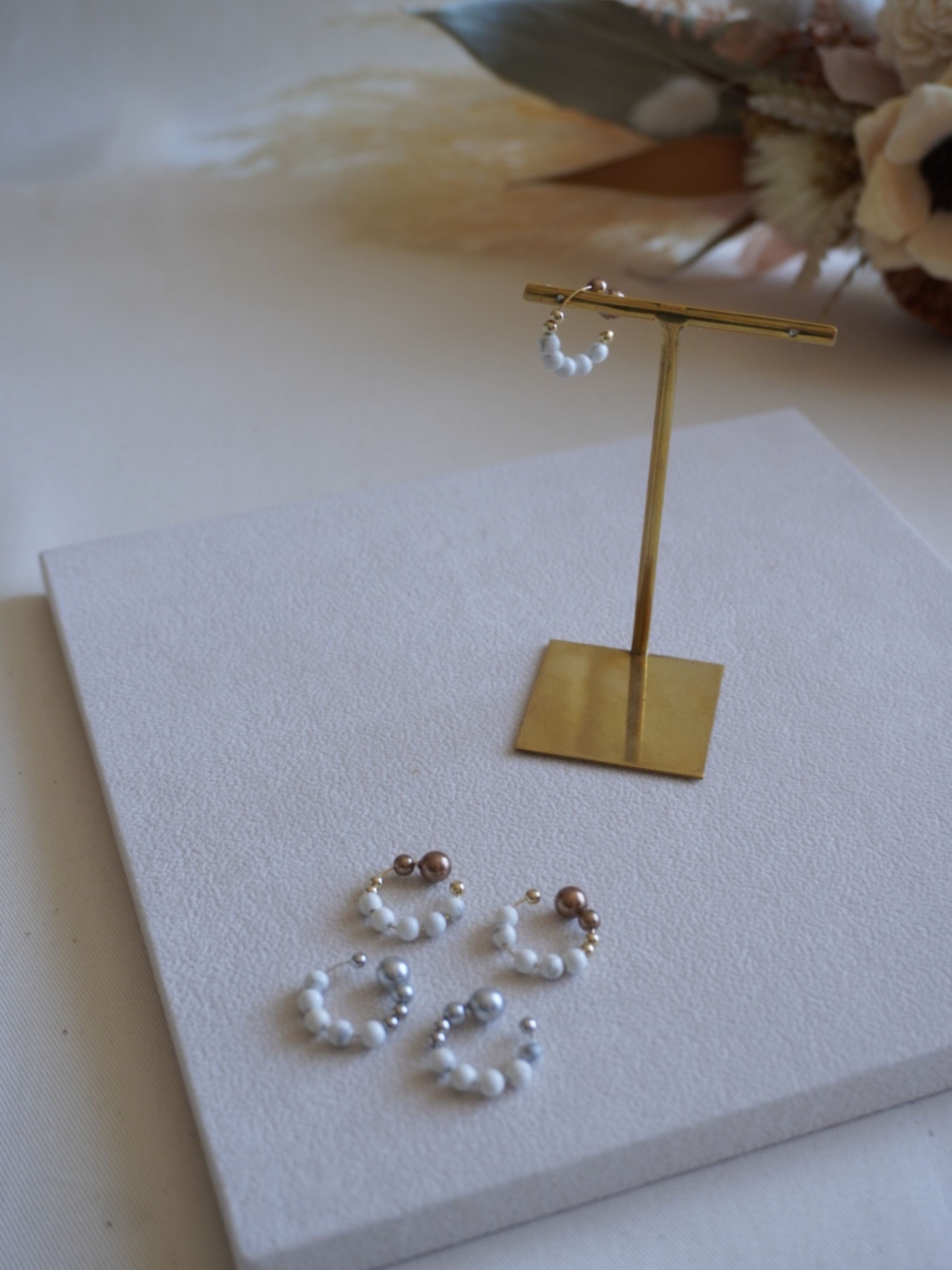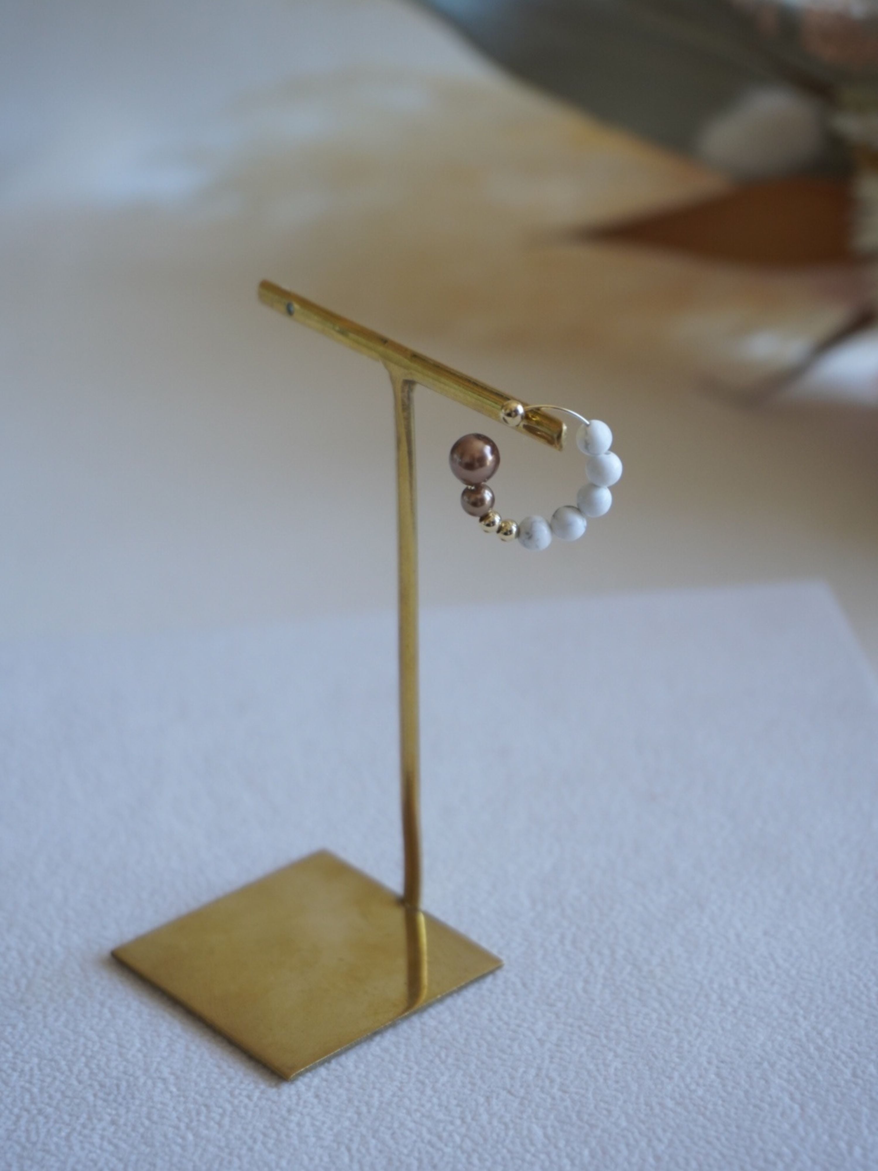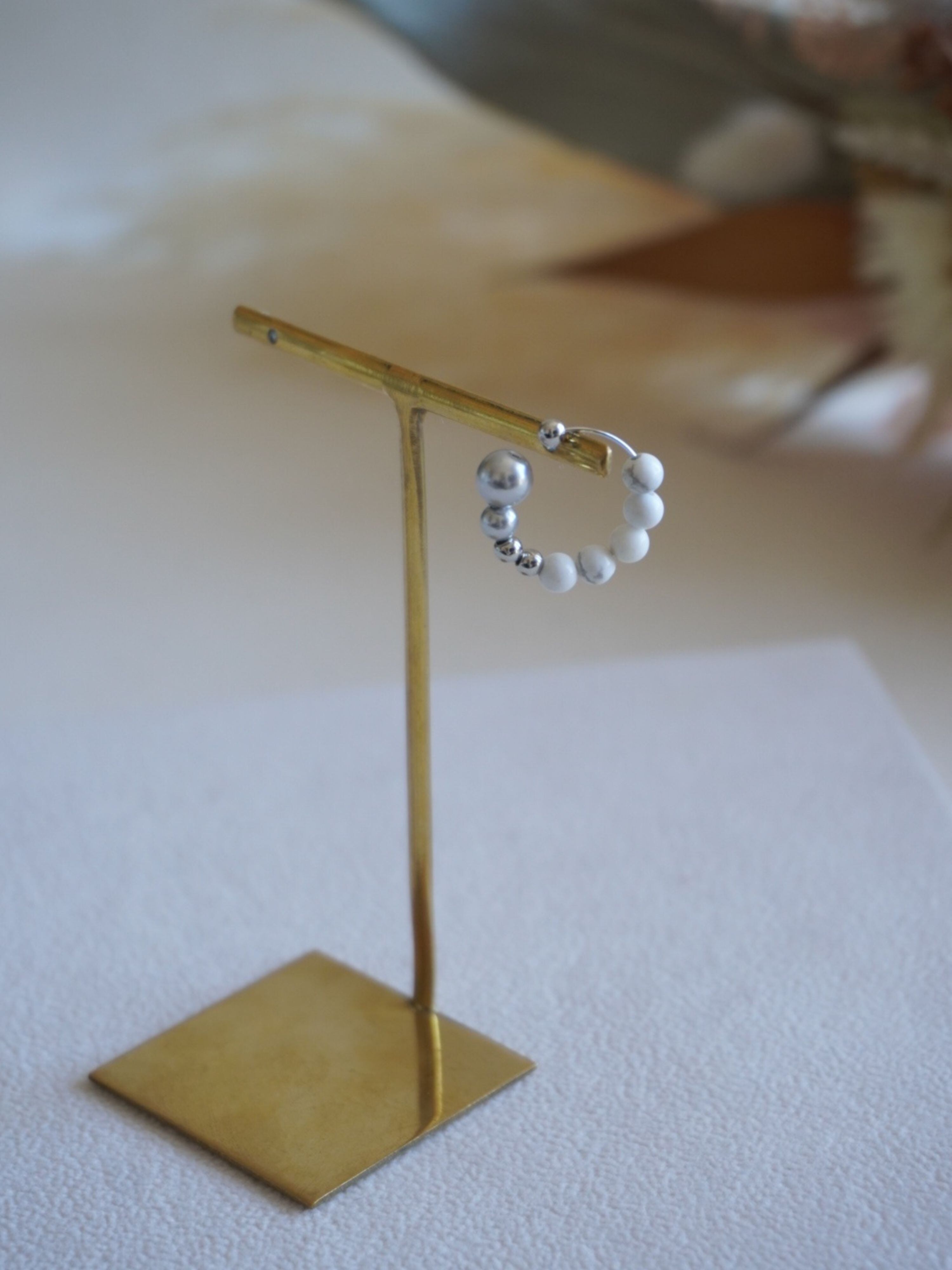 天然石ハウライトを主役に、素材の質感にこだわって仕上げたイヤーカフ。