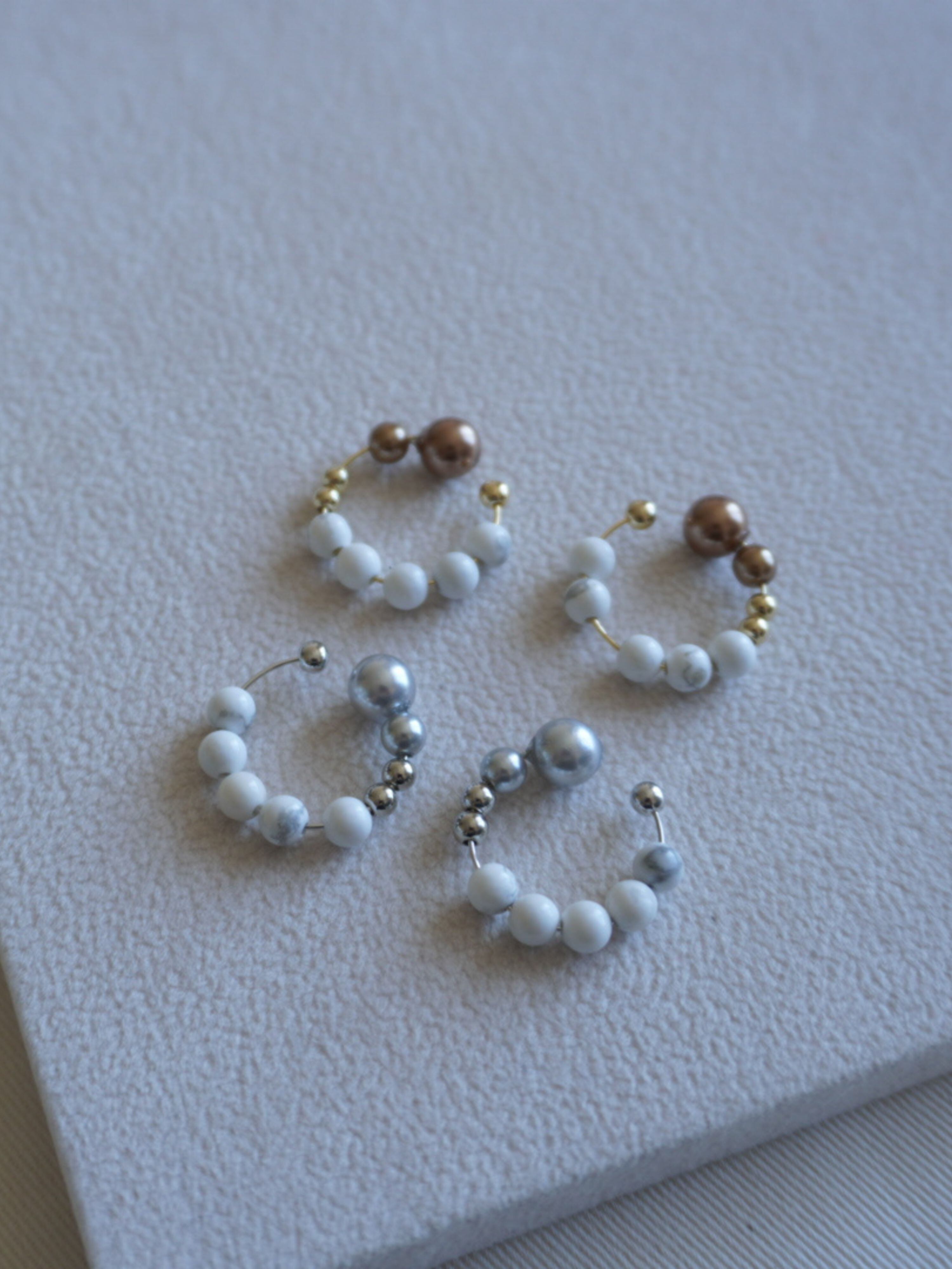 ハウライト × ビーズ イヤーカフ(ゴールド/シルバー)