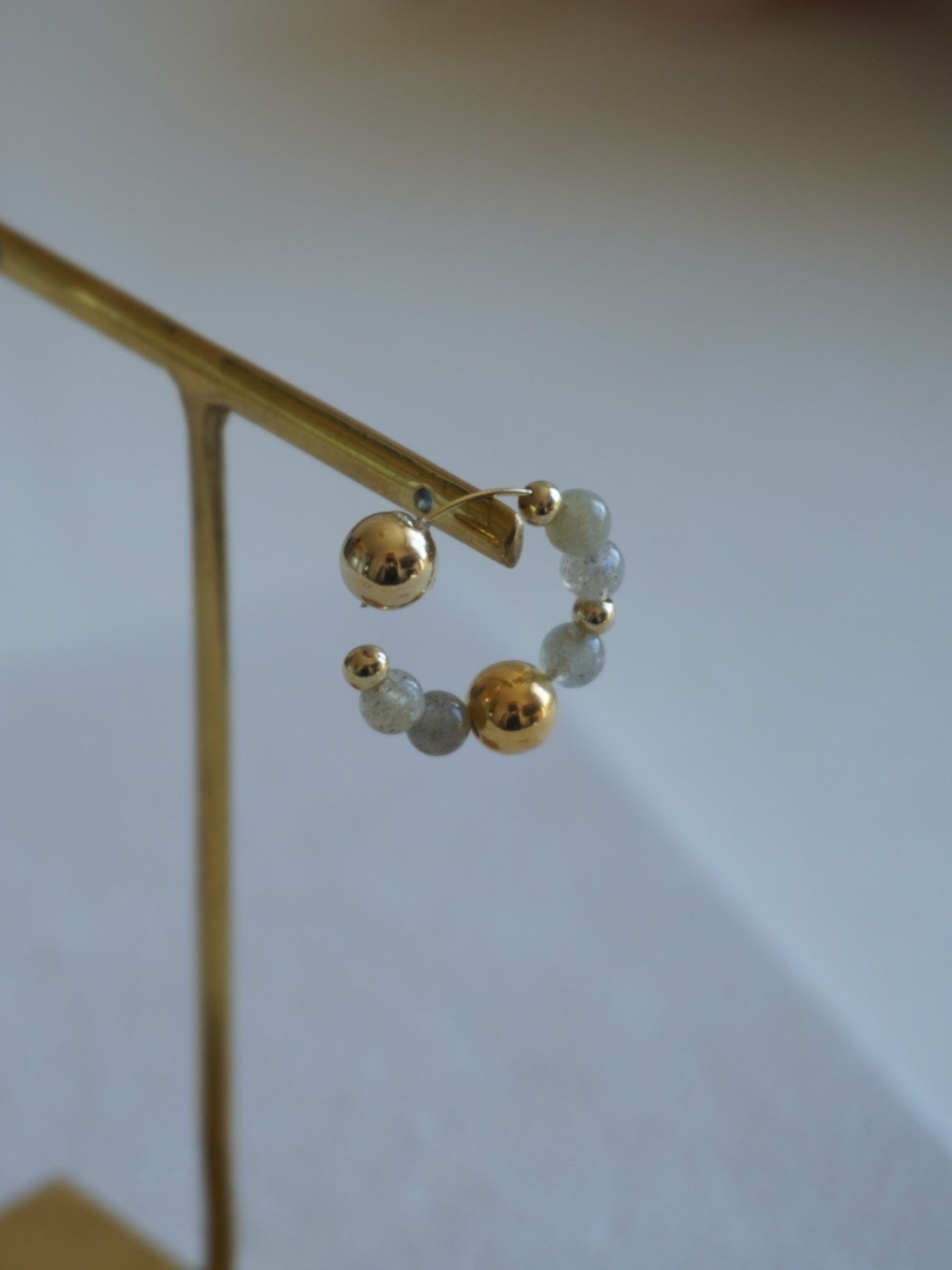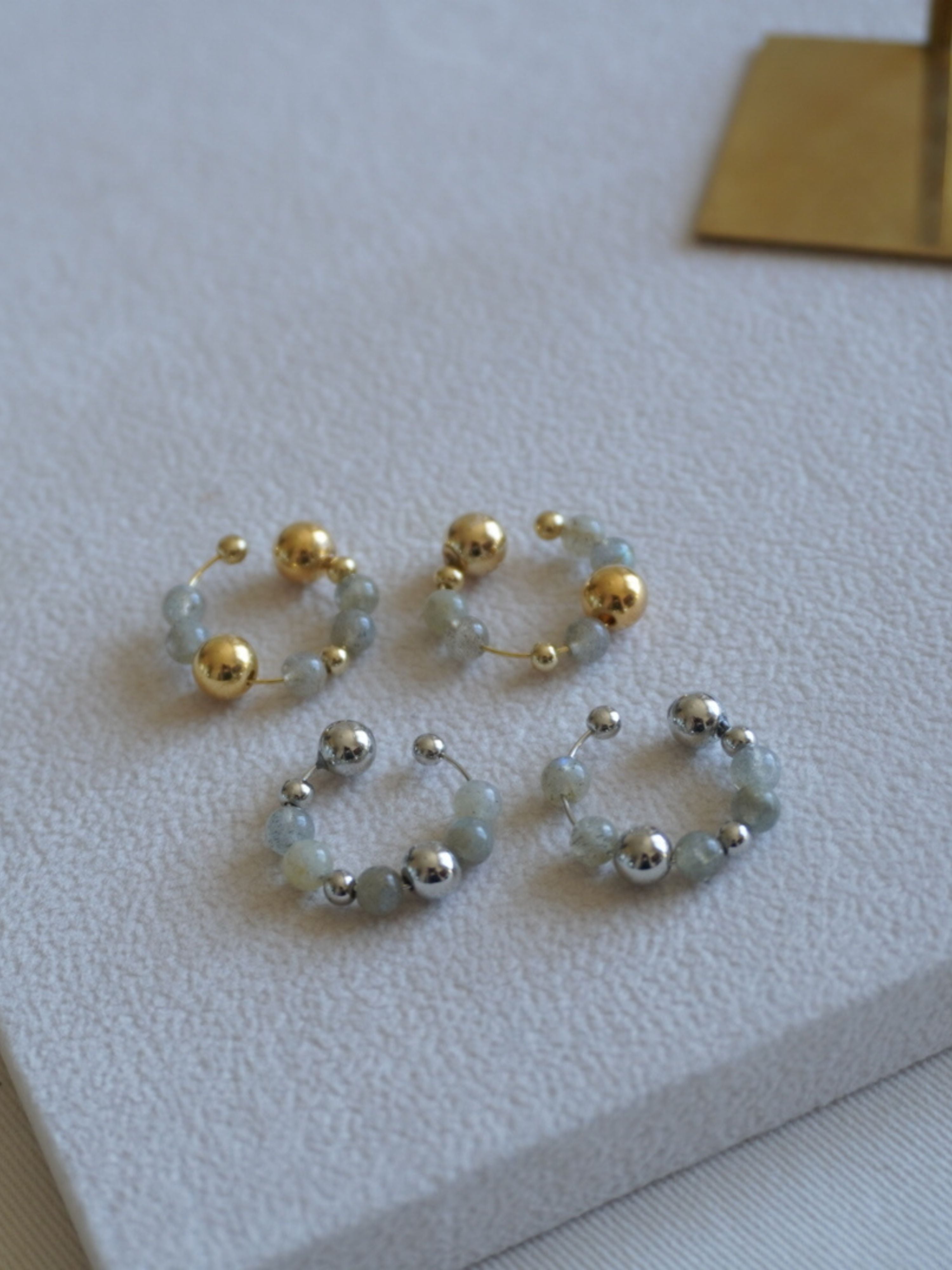 ラブラドライト × ビーズ イヤーカフ(ゴールド/シルバー)