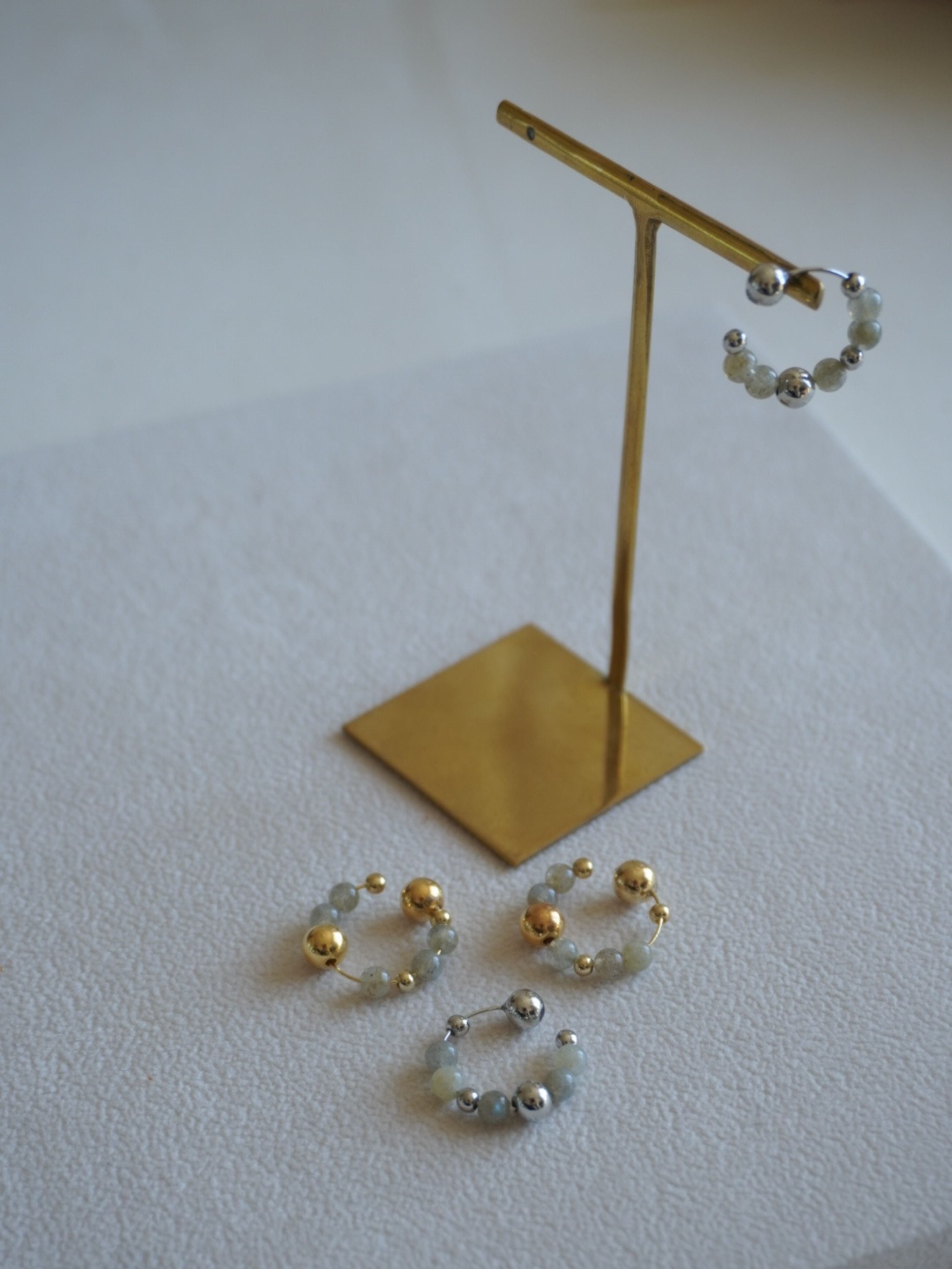 見るたびに色が変わるような奥行きのある輝きが、耳元にさりげない個性を添えます。